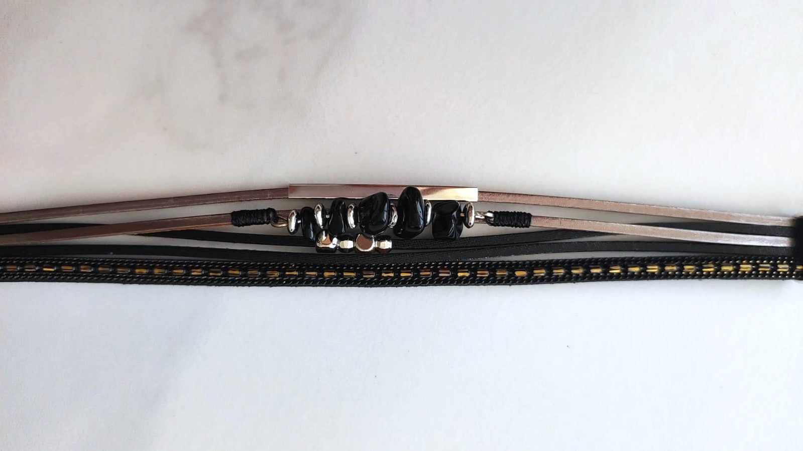 Pulsera Multi-Capa Negra y Plateada