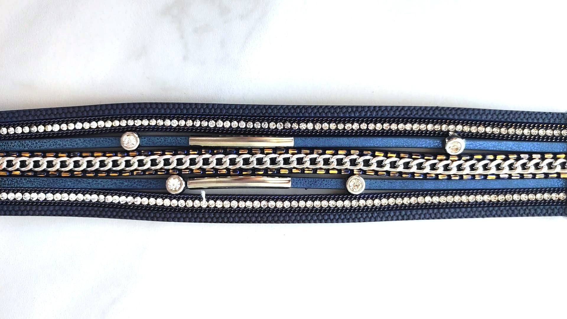 Pulsera Brazalete Multi-Capas Azul Marino con Cadenas y Strass