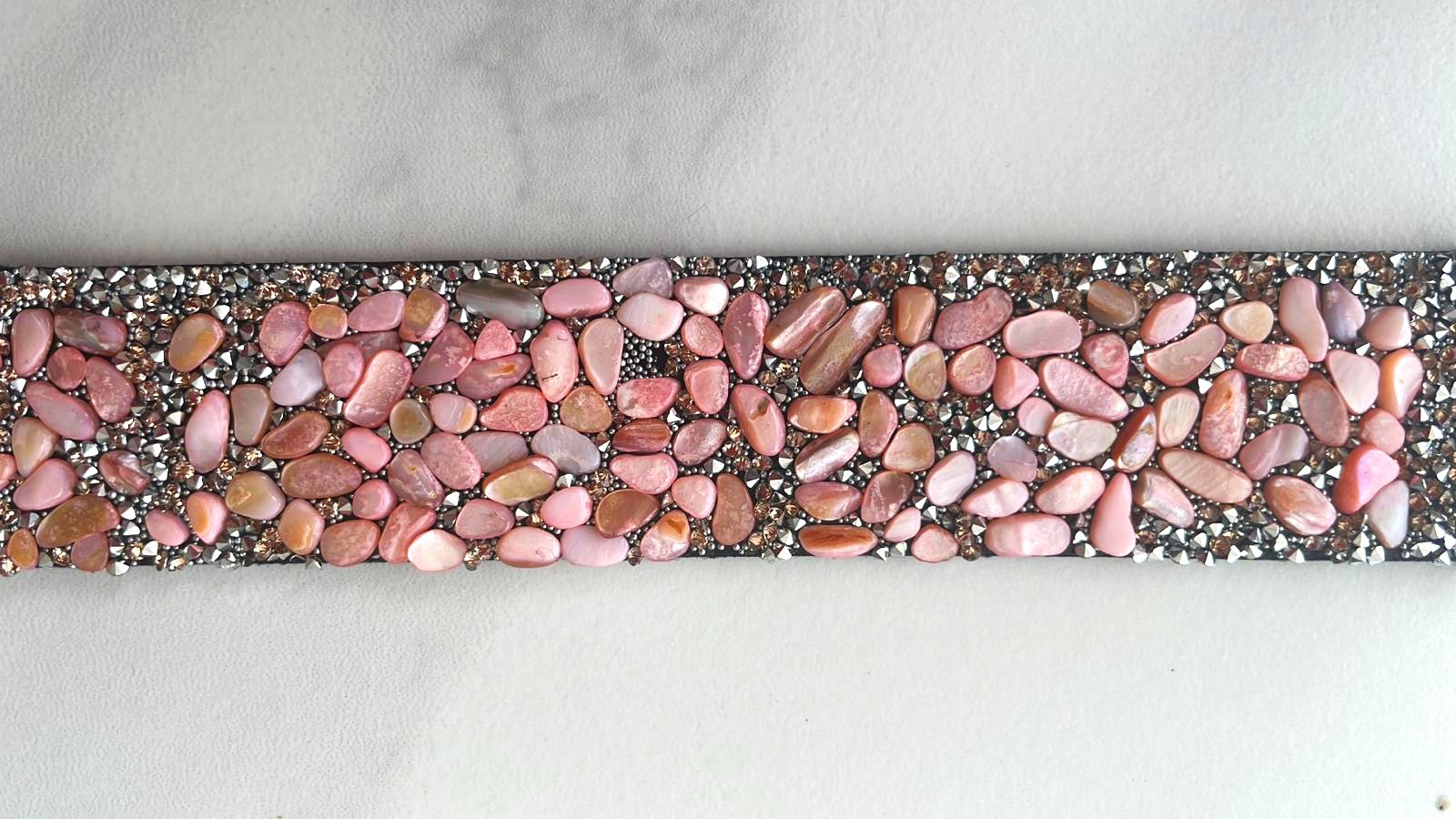 Pulsera Ancha Impactante de Piedra Rosa y Cristal